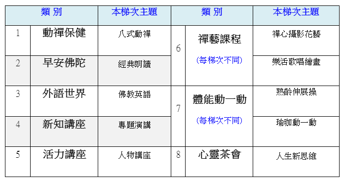 法鼓山特別為銀髮族設計的專屬課程,